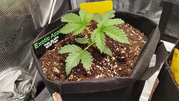 Die Exotic Applez wirkt ebenfalls gesund und stabil. Schöne Blattfarbe, nichts auffälliges. Die neuen Triebe bilden sich sichtbar in der Mitte. In ein paar Tagen wird die Pflanze deutlich breiter werden.