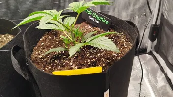 Die Indigo Saphire wächst kompakt und wirkt sehr stabil. Die Blätter stehen gut, nichts hängt. Nach dem Topping kommen die neuen Triebe jetzt langsam nach. Das ist perfekt, denn genau diese Triebe werden später die neue Form der Pflanze bestimmen.