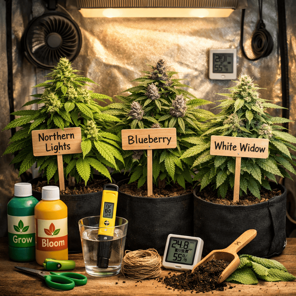 Für Anfänger sind nicht die ausgefallensten Genetiken die beste Wahl, sondern die stabilen. Mit Northern Lights, Blueberry und White Widow bekommst du Sorten, die sich in vielen Setups bewährt haben und dir mehr Fehlertoleranz geben.
